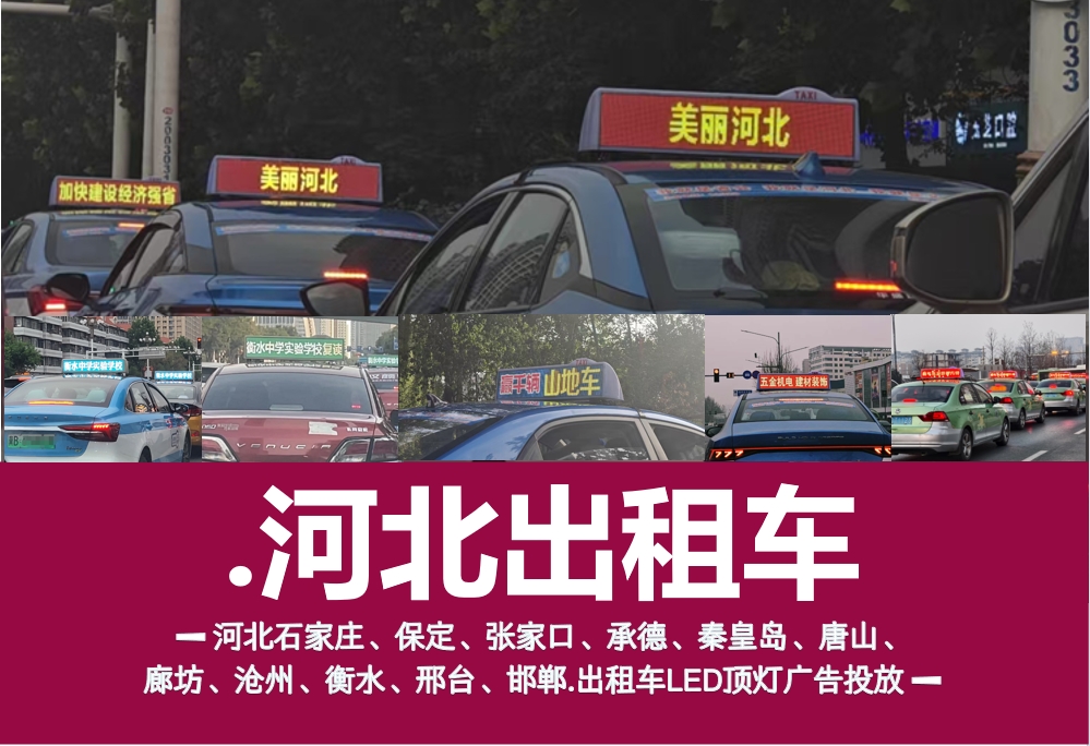 代理投放河北地区出租车顶灯LED显示屏广告,提供媒体发布及混合多种媒体形式的策略性广告投放方案的制定及落地执行。出租车顶灯广告作为户外广告的一种传播展现形式,其所表现的出的传播特点主播凸出在覆盖范围广泛,受众人群基数庞大,且这类媒体通常都是全天候轮番滚动播放,可以做到将日间、夜间不同出行人群进行覆盖。